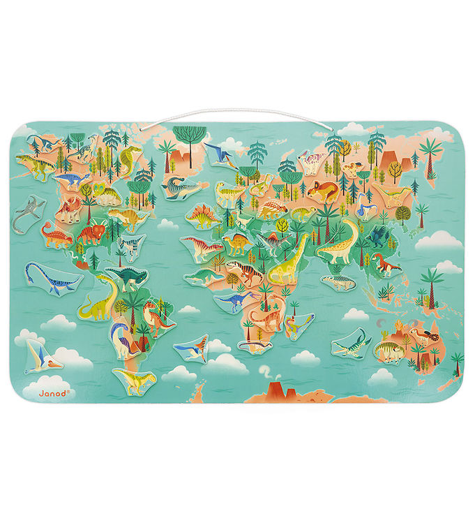 Janod Puslespil - 50 Brikker - Magnetisk Dino-verdenskort